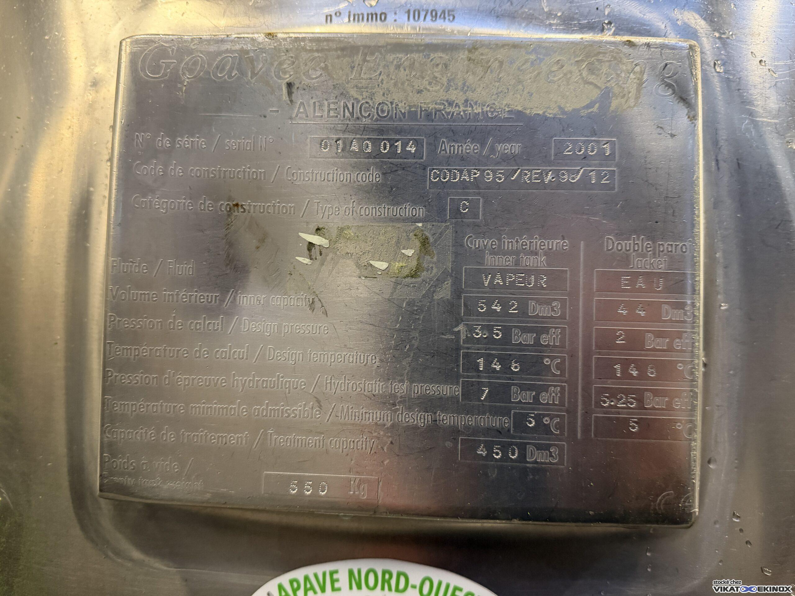 Useful capacity : 450 litres