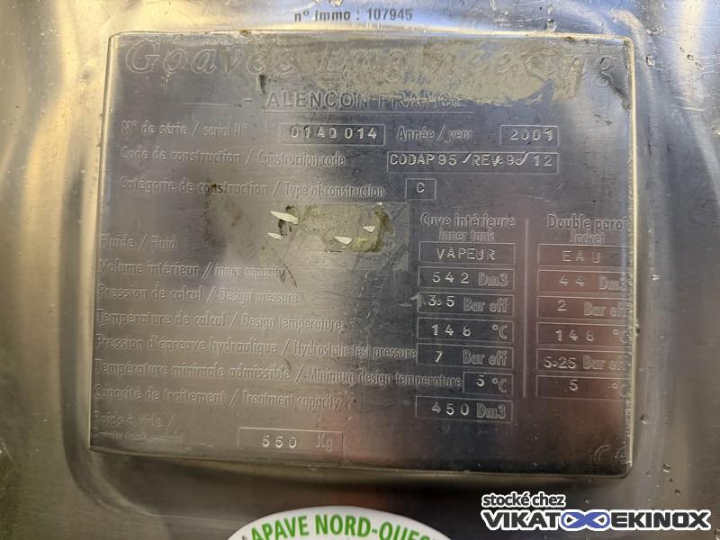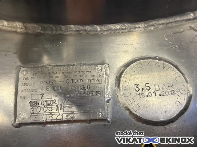 Pierre Guerin S/S double jacket agitated tank -1271 litres – Magnetic stirrer – Vacuum / + 3 bar