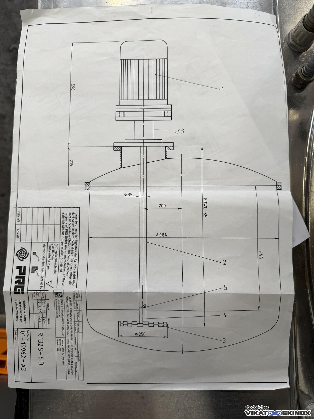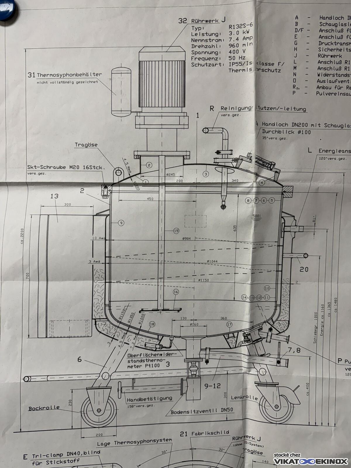 Cuve inox agitée 350 litres total -1/+2,5 bar