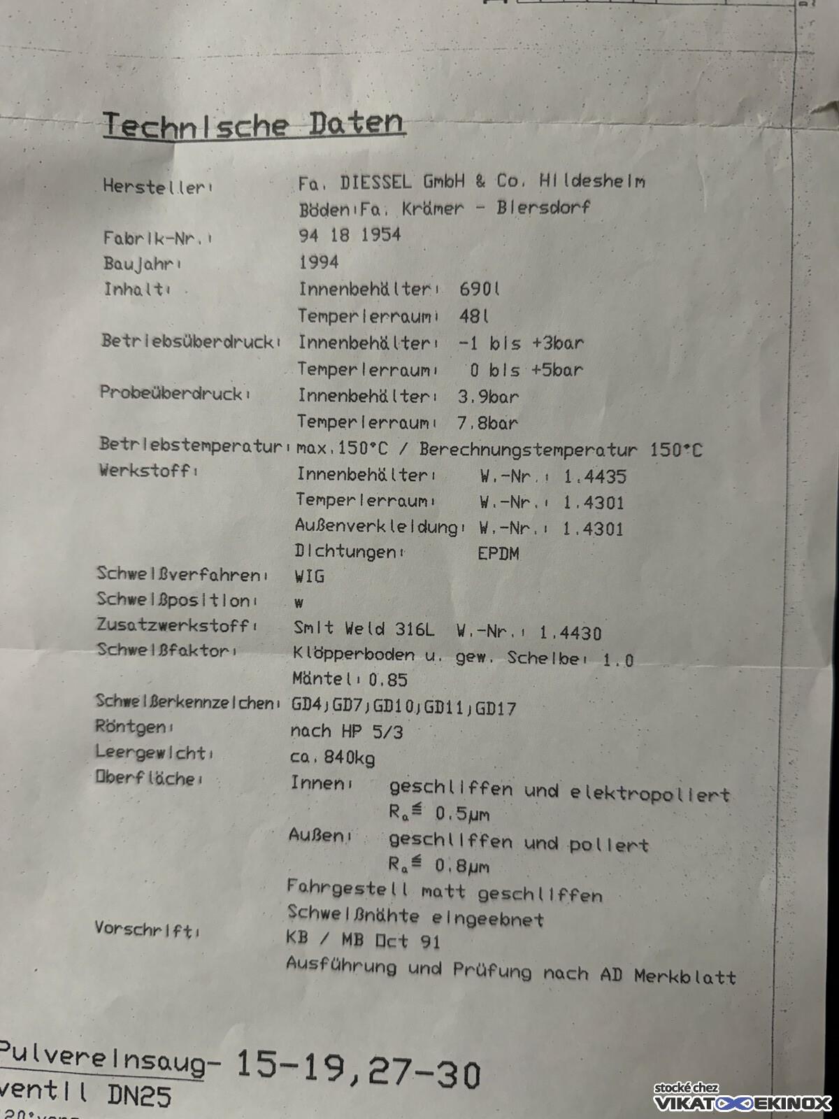 Cuve de fabrication 690 litres double enveloppe DIESSEL