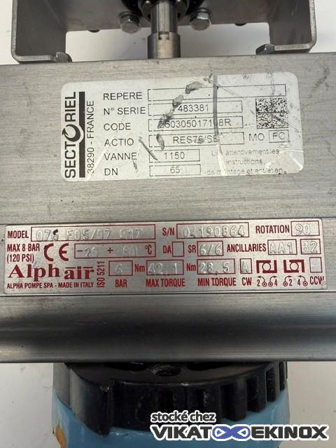 Vanne papillon TTV DN65 type 20W9040 avec actionneur ALPHAIR